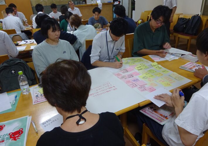 長野県NPOセンター事務局次長 古越武彦氏を講師にお迎えし、「被災者の命を守る支援のあり方とは?~イタリア式に学ぶ“いま”と“これから”~について、講義を受けました。講義では、被難所の問題についての歴史的見直しを行い、現在の制度設計の課題の説明がありました。また、災害対策基本法の制度設計が人権の尊重に欠けており、被災者への支援が不十分であることを指摘し、イタリアの人道支援型アプローチを参考にした日常生活を維持できる支援の必要性を強調されました。その後、被災者支援、災害関連死0(ゼロ)を目指した支援活動について、ワークショップ形式で考えました。被災者の支援方法について意見を出し合い、避難所生活における困りごとや日常生活を維持できる支援内容を深めました。
