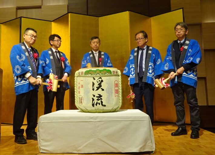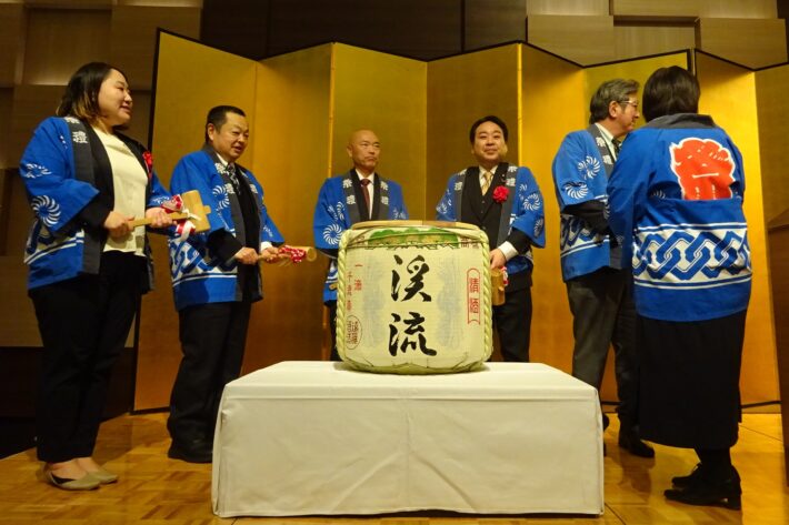 その後、長野県、国会議員・秘書、長野県農業協同組合中央会、長野県虹の会、長野県社会福祉協議会、長野県労働者福協議会、日本生活協同組合連合会の皆様による鏡開きを行い、大谷昌史長野県虹の会会長(信越明星株式会社代表取締役社長)による乾杯のご発声とともに、和やかな歓談の時間へと移りました。